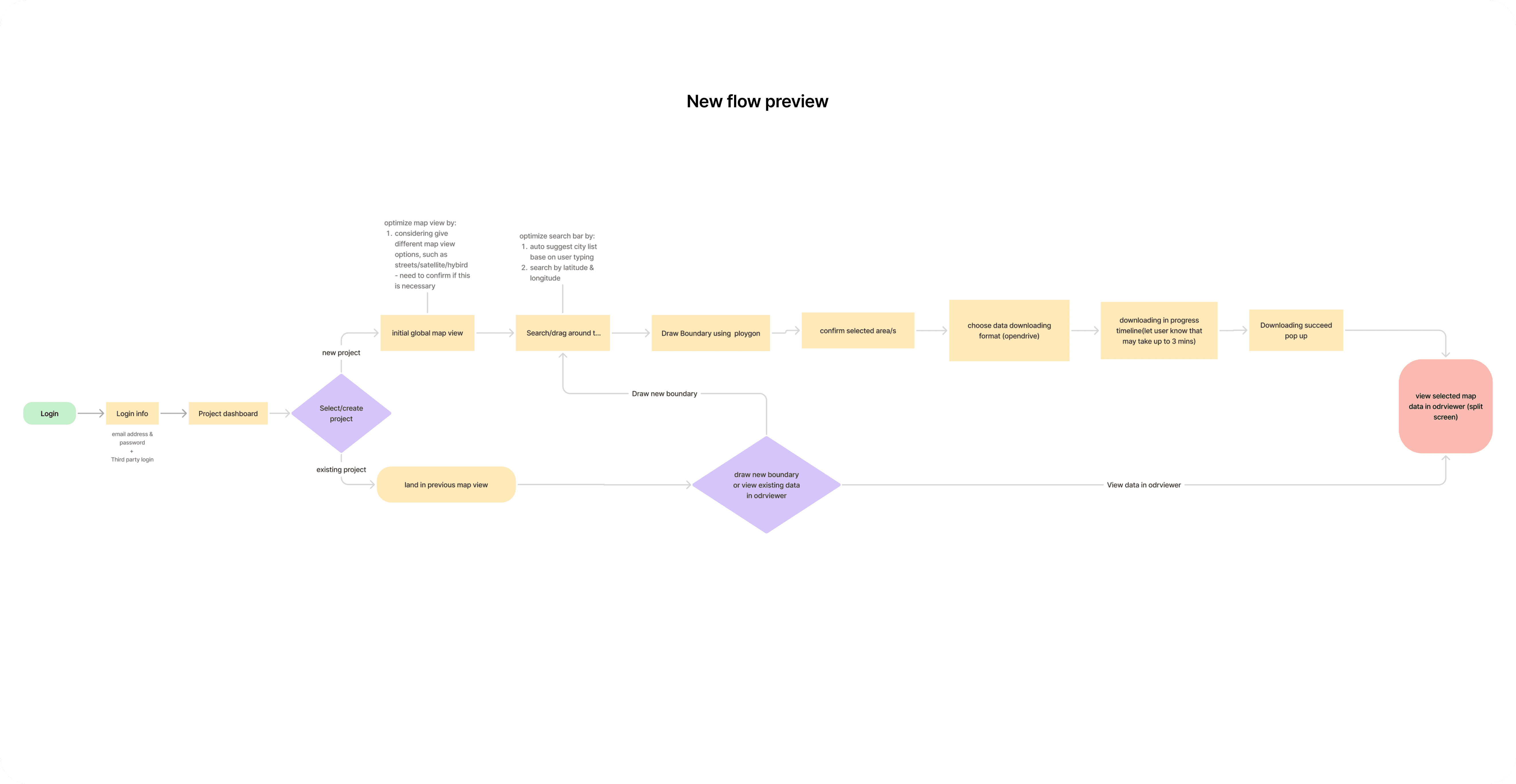 After identifying these issues, I created a new optimized user flow to address each problem. Now, we have a persistent workspace, clearer token visibility, more flexible drawing tools, and a more intuitive project organization. With these improvements, we’ve streamlined the entire process before diving into the design solution.