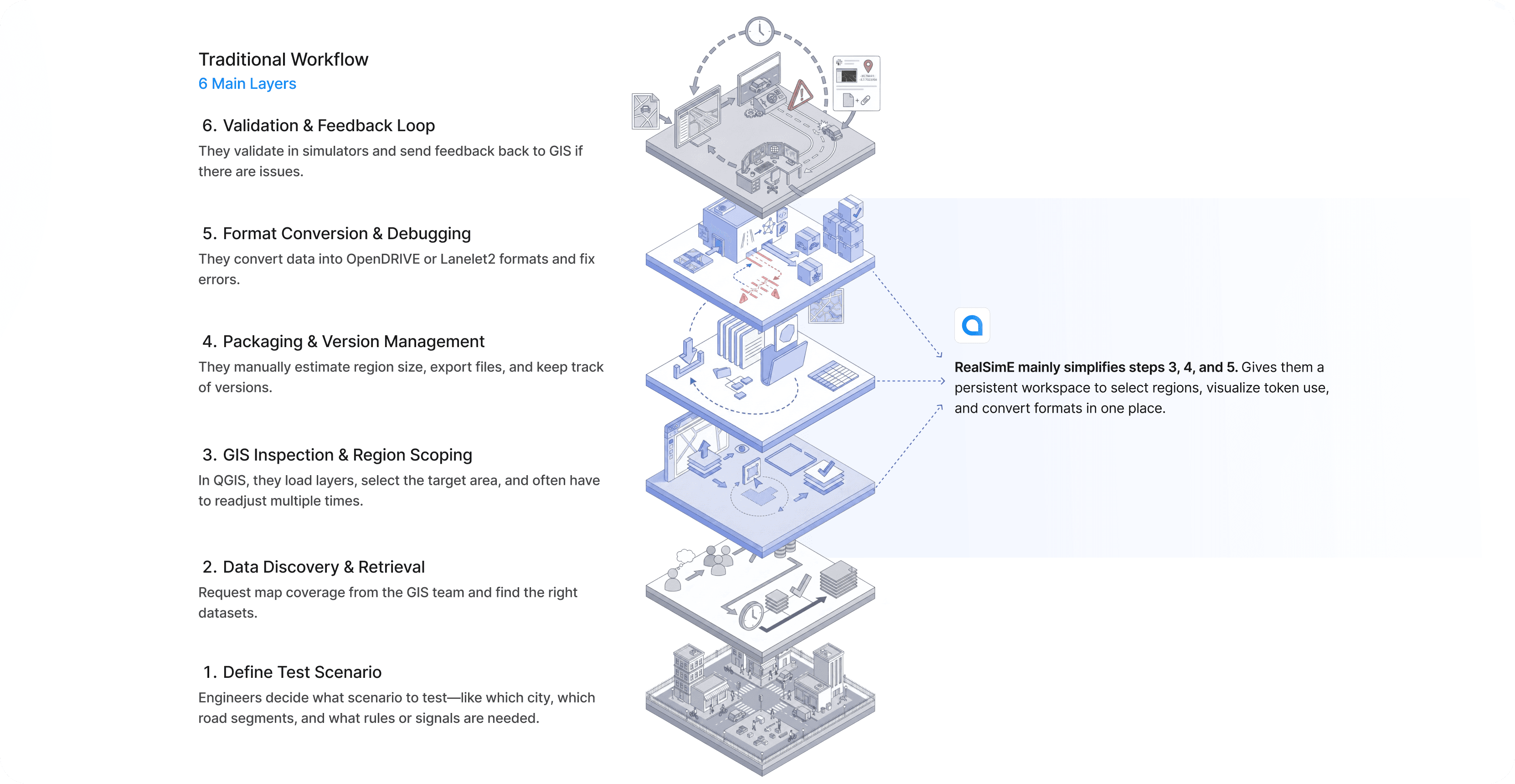 The Challenge: RealSimE operates in the autonomous driving simulation market, where AD/ADAS engineers need high-fidelity HD maps to test their systems in virtual environments like CARLA, dSPACE, and RoadRunner.