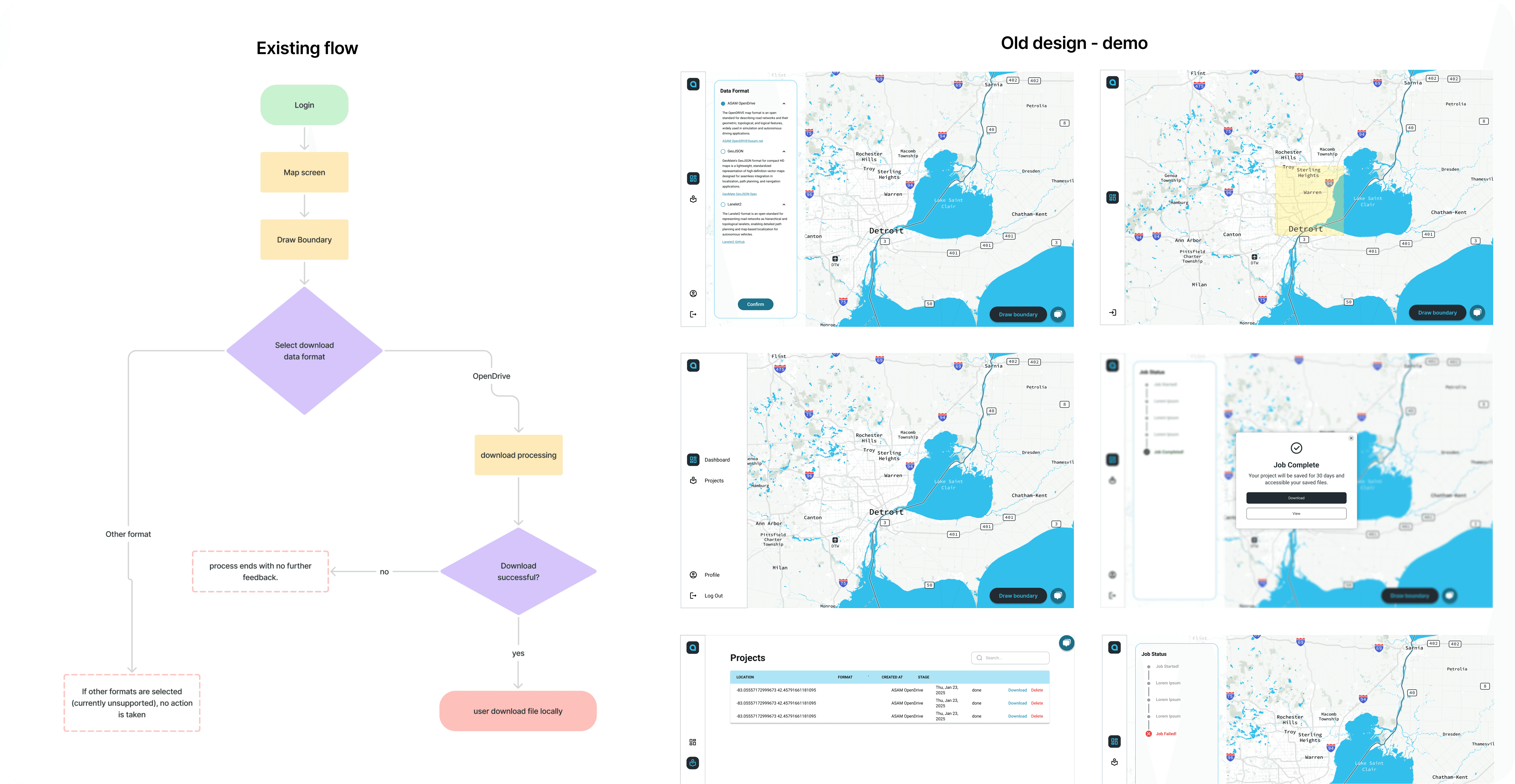 When I joined, RealSimE was an MVP with no persistence, an unclear export flow (no token/data preview), limited region tools, and no in-app simulation preview for validating OpenDRIVE. With October 2025 trials only 12 weeks away, we risked breaking real workflows, losing early enterprise trust, and delaying GeoMate’s launch in a competitive AD simulation market.